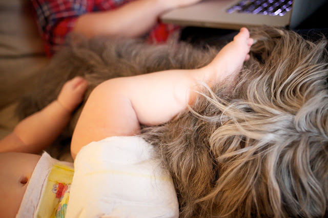 There are so many times when I feel so much guilt about how the dogs’ lives have changed since adding E.V. to our family. The reality is that we just don’t have as much time and energy to spend with Oscar and Olive as we used to, and on top of that there are a lot more rules for us to chastise them about nowadays as well. Truthfully I think their favorite moments come when Emma Vance isn’t around and life is like the “old” days. Oftentimes they look as us so pleadingly during baby-less naps and snuggles that I’m sure they must be thinking, “Remember this? Remember how NICE this used to be? Just the four of us?” Poor guys. Thankfully in moments where I’m tending to the baby, Ryan can give them all his attention, making them totally Daddy’s Dogs lately–which I’m both glad for and jealous about.