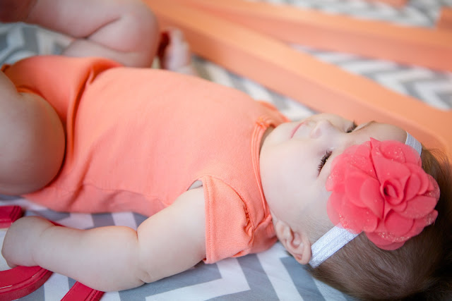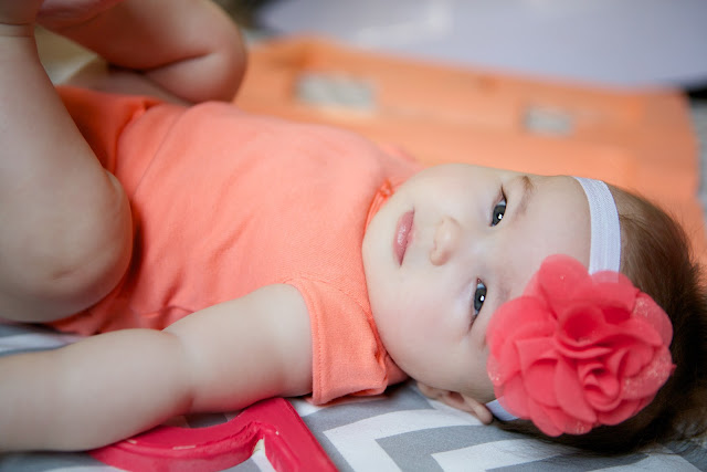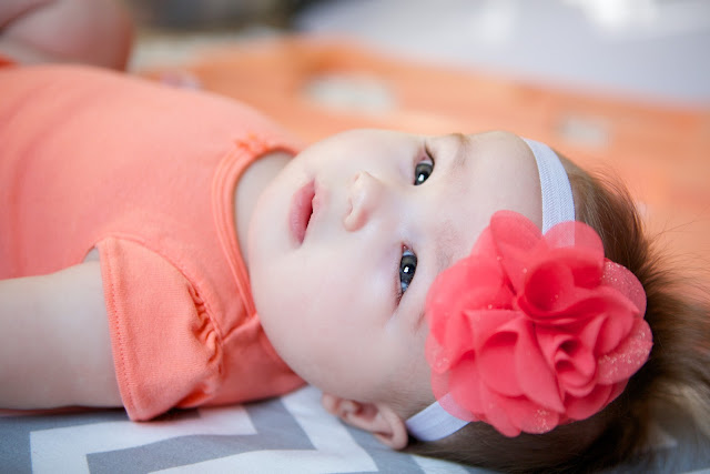 You’re progressing so well with your development, it amazes me each time you master a new skill. You grab objects with ease, move them around at will, and have taken leaps and bounds in your motor skills this month. When we sit for down for dinner with you in our laps, you are in heaven! You reach for everything on the table, including dishes, which is cute but really dangerous! :) You’re still obsessed with putting EVERYTHING in your mouth, which cracks me up but is also very dangerous, so I’ve got my eye on you, little lady. This month you just started reaching for us, and it makes me grin from ear to ear when it happens. To know that you actually want to be with me fills my heart to its fullest. We often sit on the floor, face to face, playing with each other and with your toys, and I cherished those small moments especially this month because now you are actually playing with us. You also have been sitting up on your own in small spurts for a while now, but this last week you began being confident enough to sit up for extended periods of time. (Yesterday you sat up for about seven minutes all alone!) You have yet to be able to actually make yourself sit up, but boy do you try! When we have you propped up at an angle, you always pull yourself up with your little baby abs (which are quite impressive, little athlete!) to sit up with the big people. In fact, we’ve been propping up your newborn lounger on the couch so you could sit up straight with us, but last week it finally happened: You reached down for a toy and tumbled head first off the couch, hitting the coffee table and landing face down on the ground. My heart has never stopped for so long; I was across the room, watching it all happen in slow motion. I felt terrible. You had a huge knot on your head and a line across your forehead from the coffee table, and I just rocked you and held you until you calmed down. I’m so sorry, Emma Vance. I promised I would never let anything hurt you, that I’d protect you, and I failed.