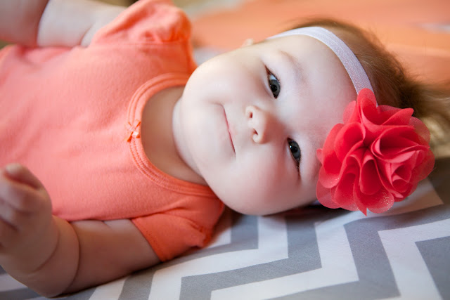 You’re progressing so well with your development, it amazes me each time you master a new skill. You grab objects with ease, move them around at will, and have taken leaps and bounds in your motor skills this month. When we sit for down for dinner with you in our laps, you are in heaven! You reach for everything on the table, including dishes, which is cute but really dangerous! :) You’re still obsessed with putting EVERYTHING in your mouth, which cracks me up but is also very dangerous, so I’ve got my eye on you, little lady. This month you just started reaching for us, and it makes me grin from ear to ear when it happens. To know that you actually want to be with me fills my heart to its fullest. We often sit on the floor, face to face, playing with each other and with your toys, and I cherished those small moments especially this month because now you are actually playing with us. You also have been sitting up on your own in small spurts for a while now, but this last week you began being confident enough to sit up for extended periods of time. (Yesterday you sat up for about seven minutes all alone!) You have yet to be able to actually make yourself sit up, but boy do you try! When we have you propped up at an angle, you always pull yourself up with your little baby abs (which are quite impressive, little athlete!) to sit up with the big people. In fact, we’ve been propping up your newborn lounger on the couch so you could sit up straight with us, but last week it finally happened: You reached down for a toy and tumbled head first off the couch, hitting the coffee table and landing face down on the ground. My heart has never stopped for so long; I was across the room, watching it all happen in slow motion. I felt terrible. You had a huge knot on your head and a line across your forehead from the coffee table, and I just rocked you and held you until you calmed down. I’m so sorry, Emma Vance. I promised I would never let anything hurt you, that I’d protect you, and I failed.