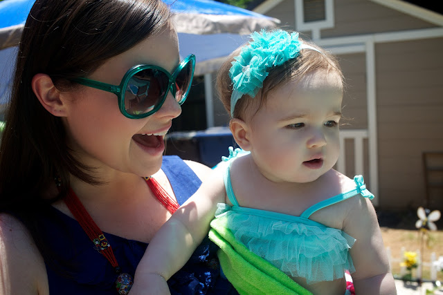 “E.V. Beach” is full of fun little toys and activities to keep Emma Vance occupied, and after taking an immediate nose-dive into the sand after about two seconds of playing, it did its job and kept her occupied all afternoon. She loved lounging in the baby pool, crawling through the gritty sand and chewing on the beach toys (especially a hula girl that was her clear favorite of the day!). I think she was sad to leave E.V. Beach, trading her tutu swimsuit for dry clothes, in order to join us grown-ups for lunch…and I can’t blame her! :)