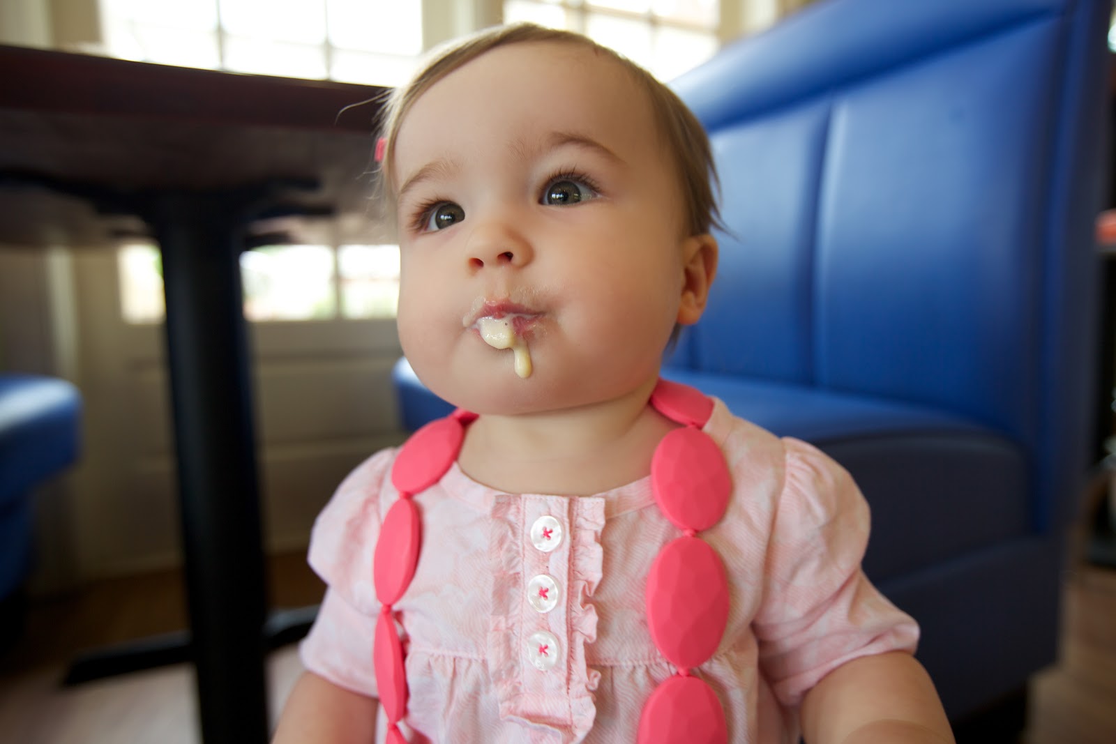 Someone had their “first” taste of ice cream today. I say “first” because Ryan thought he was being funny when he gave a tiny taste of Chick-fil-A Ice Dream to E.V. when she was about a month old. Guess who didn’t think it was so funny? No, dear, feeding a baby ice cream is NOT like giving it milk–nor is it the same type of milk.