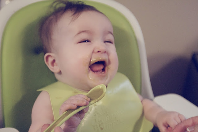 We’ve been doing the oatmeal thing for a couple weeks now, and it’s going great. We were waiting for Ryan to get back into town before starting vegetables, and her reaction was so hilarious that it was worth the wait for him to be able to participate. Let’s hope that she likes other veggies better than she liked peas or we may be in trouble…