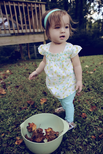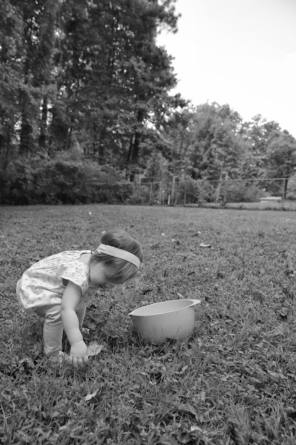 And, when our harvest was complete (topped with a piece of pine straw E.V. declared worthy of the bowl with a simple “Woooow!” as she added the anomaly to our collection), she dumped out the contents and started again. And again we filled the bowl. And again she dumped it out. And again we filled the bowl. It was a perfect way to ring in the new season–and for tomorrow? I’m thinking something pumpkin or apple or cinnamon…or all three. ;)