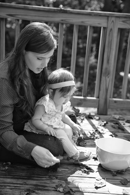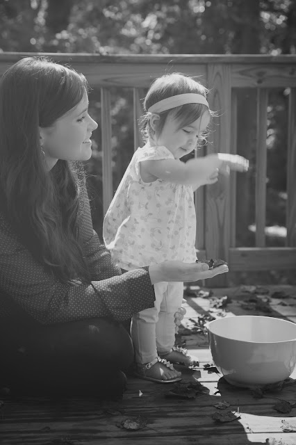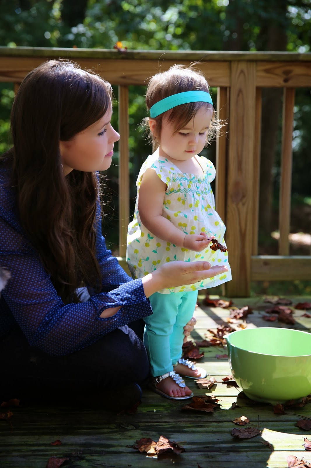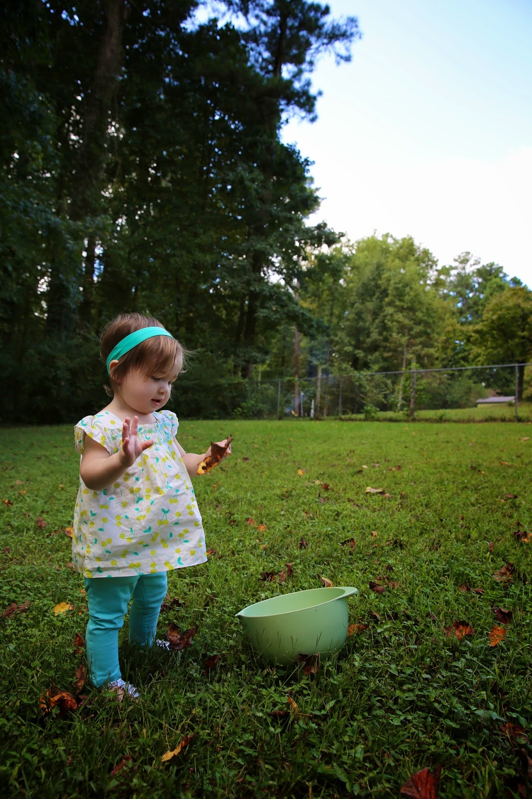 And, when our harvest was complete (topped with a piece of pine straw E.V. declared worthy of the bowl with a simple “Woooow!” as she added the anomaly to our collection), she dumped out the contents and started again. And again we filled the bowl. And again she dumped it out. And again we filled the bowl. It was a perfect way to ring in the new season–and for tomorrow? I’m thinking something pumpkin or apple or cinnamon…or all three. ;)