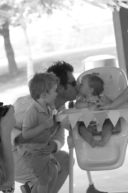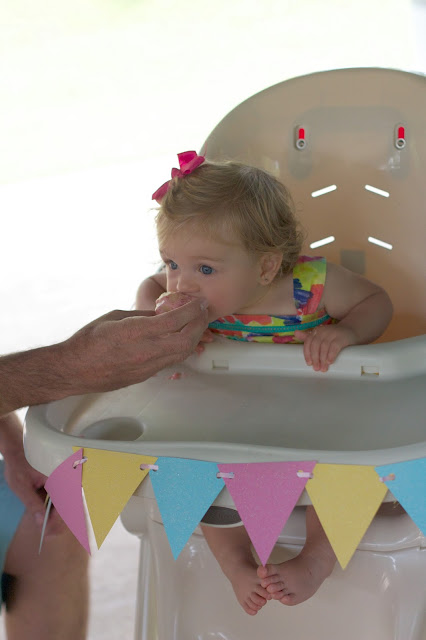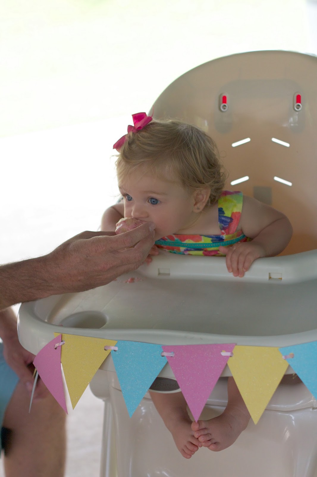 My friend from my small group, Amber, has a daughter who is just a few weeks older than E.V., so we celebrated her first birthday today. Blake (Lady B!) has two boisterous older brothers (which makes for perhaps the most attractive, all-American family I’ve ever met), meaning that her party was FULL of big kids, many of whom Emma Vance attempted to befriend. Unfortunately, E.V. has yet to learn that big kids have their own agendas that don’t involve crawling around and drinking ba-bas, so as the older children enjoyed chalk paints and the playground, we settled for playing with (or, rather, stealing Blake’s) balls, leaves and sticks. Oh, the simpleness of babyhood! Toward the end, E.V. took notes on smash cake etiquette from Blake, and now I’m certain Emma Vance’s impending smash cake debut is all she can think about! :)