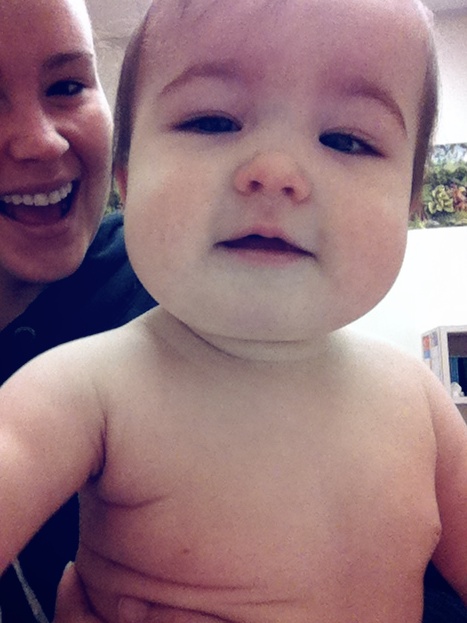 Today is Emma Vance’s nine month birthday, and we celebrated with an early morning visit to the pediatrician’s office. Since it’s been three months since her last official visit, things have changed quite a bit with her mobility, so I had to get creative to keep her entertained while waiting. After fighting a squirmy baby on the exam table for a few minutes, I convinced myself that they must keep the floors clean in a doctor’s office, so she crawled around, pulling apart my diaper bag, scratching my shoes/pulling up on my legs and practicing her selfie skills. Then the doctor came in, and I breathed a sigh of relief for the provided entertainment.
