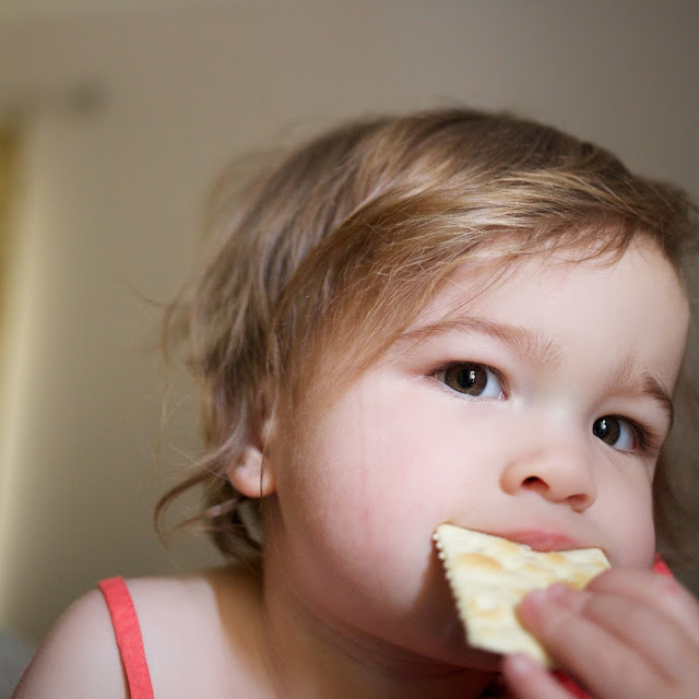 When Sleeping Beauty finally awoke, we did our daily post-nap routine. You see, E.V. is a bit of a snuggle bug, so she needs a few minutes of cuddling after a long snooze to wake up properly. (Who doesn’t?) This wouldn’t be unique, except that a few weeks ago I had a bout of the flu and had stashed Saltines in my nightstand, which Emma Vance promptly unearthed and sneakily devoured. Since then, she climbs over me to get into my nightstand, digging around for her crackers. So, every day, when she wakes up, we snuggle and have a sleepy Saltine snack in bed together. It makes for crumby sheets, but it also makes for good memories. Clearly “good memories” wins out in that match up. ;)