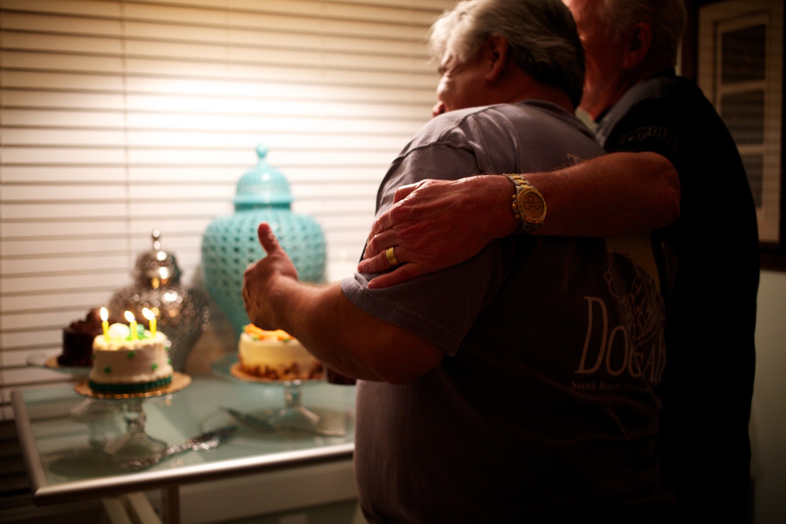 | Papa Don enjoying hors d’oeuvres. E.V. enjoying my necklace. |