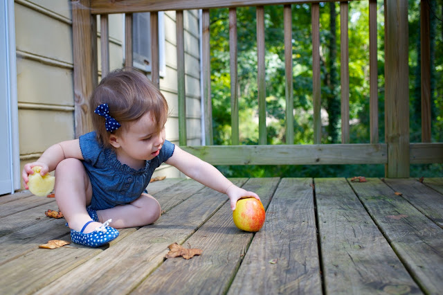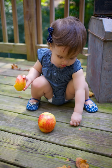 It’s her latest obsession, the word “apple.” I’ve been giving her slices of the fruit over the past couple months, and she always seems to enjoy gnawing on them. Over the past week or two, though, she’s been ravenous for them, carrying around her apple slice (and oftentimes the leftover 75% of the apple, too) as she plays. It’s a funny sight to see because her molars aren’t quite in yet, so she can’t actually chew what she bites off, but she spits the little chunks out and feeds them to Oscar (who, of course, is happy to take them off her hands). Nowadays she begs me for them, following me around the kitchen saying, “Ah-puh, ah-puh, ah-puh,” until I hand her a Pink Lady or Cripps Pink. ;) It’s adorable, totally entertaining, and a unique love affair that I hope doesn’t fade too quickly. (Although, if history repeats itself, she’ll be onto a new word–and a new obsession–soon enough.)