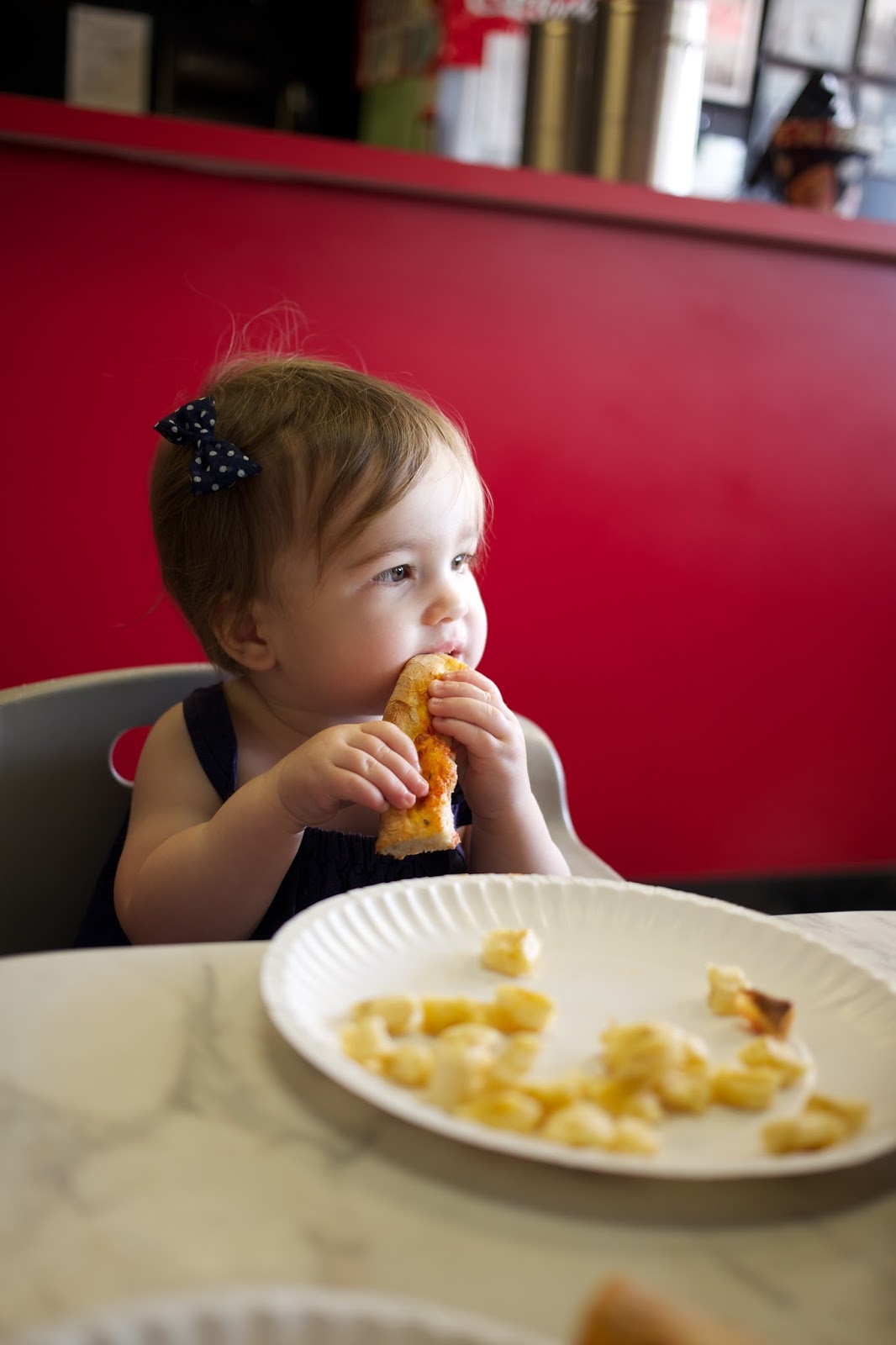 The first time we hung out, the Aquilios came to Amityville for pizza and playtime. E.V. was still napping when they arrived, and so you can imagine the baby excitement that followed when she awoke. Really this is what I’ve always wanted for her tiny corner in our living room–kids crowded around, digging through bins and playing freely. Emma Vance was pumped to show them around her toys (and to share), and especially enjoyed playing tea party, her latest obsession, with the girls.