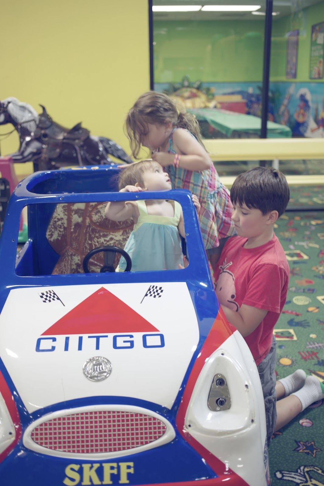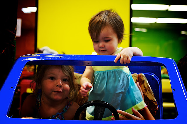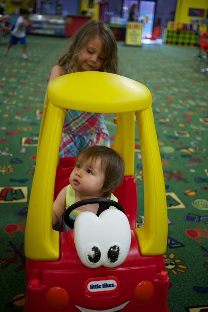 A few days later we met up at Monkey Joe’s, an indoor play area for kids. E.V. and I were a little early, but even though she didn’t recognize anyone, she was in instant social-baby-heaven. She’s been walking here and there for the past month, but as soon as I set her down, she walked the length of the room (maybe a hundred yards), checking out all the kids, baby toys and bouncy houses. There were a lot of “oooos” and “wows” said along the way. When the Aquilios joined us, they seemed just as excited to play as they were to hang out with Emma Vance. I was so impressed with how good of a big brother Jacob was to E.V., caring for her, taking her to the mini bouncy house, and watching out for her with such grown up responsibility. As soon as he can drive, I’m hiring him for our manny. :) E.V. was the belle of the ball, being passed around from kid to kid, held by the big kids as they slid down the bouncy slide and pushed around in the toddler car. It was a dream come true for her, and I’m pretty sure she didn’t want to ever leave. However, the second we did, she passed out without a peep and slept harder that night than she has in a long time. Well worth the $5 admission, I’d say!