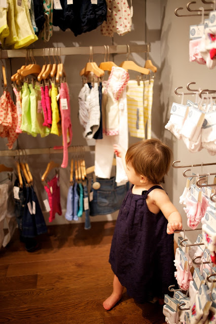The next day my mom was taking the girl cousins out for lunch and to shop for school outfits, so we joined the group since it would be our last opportunity to see them. We had pizza at a local shop, which Charlotte was SO excited about (although she admitted she’d happily had pizza at least three times that week already). Emma Vance got a kick out of chewing on a piece of crust, which made her happy for the meal, and as for Lilli, she ate like a little bird. :) After lunch Charlotte insisted on riding with E.V. and me, and as we drove, she gushed over the baby. “Baby E.V.’s my best friend,” she confided in me–and then paused. “Well, she’s my baby best friend. My real best friend is Jillian, but not my mom ‘Jillien,’ another one.” There were a lot of subsequent questions about if Emma Vance could come back to Florida with the Aquilio clan. How do you say no to that kind of love??? Thankfully we arrived at Gap Kids to shop, where Charlotte got distracted before I had to answer her and where the cousins’ true colors showed. Charlotte was all over the place with grandma close behind, her arms piling up with Charlotte’s “options” (which I’m pretty sure my mom ended up buying all of), while Lilli was happy to play with Baby E.V. and not worry about clothes. I tried to take her to her section and point out pretty things, but she just wanted to pick out dresses for Emma Vance. (So sweet.) I managed to get her to say “yes” to two dresses, but her heart was really with finding E.V. an outfit, so she and Charlotte (under the heavy influence of my mom’s opinion) picked out one little dress for their cousin. Seriously? How cute is that?