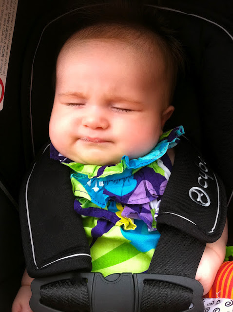Since I knew I wanted to drop by the doctor’s office Friday morning, I figured afterwards I’d knock “get car washed” off my to do list while I was out. Since errands now require more planning than ever, I woke up E.V. with intentions of wearing her out for her first nap so that she’d be passed out at the carwash. Wrong.