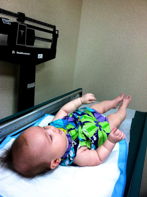 Because Emma Vance has been doing well with weight gain, growth and overall health, we didn’t need a three-month appointment with the pediatrician. I have mixed feelings about this: On one hand, I’m thankful that the doctor doesn’t have any concerns about her development. On the other hand, TWO MONTHS seems like a long time not to do at least a quick once-over to make sure everything’s still on track. Itching to at least check in on her growth stats, I dropped by the pediatrician’s office yesterday to borrow their scale.