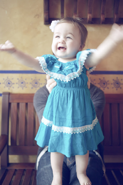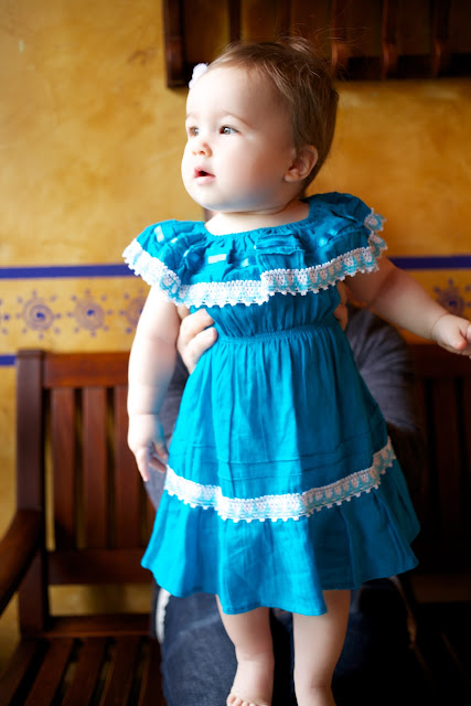 Ryan and I thought we’d be clever and miss the crowds by going out to lunch instead of dinner today–yeah right! We got caught in the post-church-non-margarita rush, but with a celebratory outfit like this one, we didn’t mind too much! Our friends the McGlowns bought it for E.V. on their honeymoon last year, and we’ve been patiently waiting for this holiday–which also happens to be their one year anniversary!–to put it to good use. Needless to say, Emma Vance garnered a LOT of attention and was the belle of the Cinco de Mayo ball at La Parilla this afternoon!