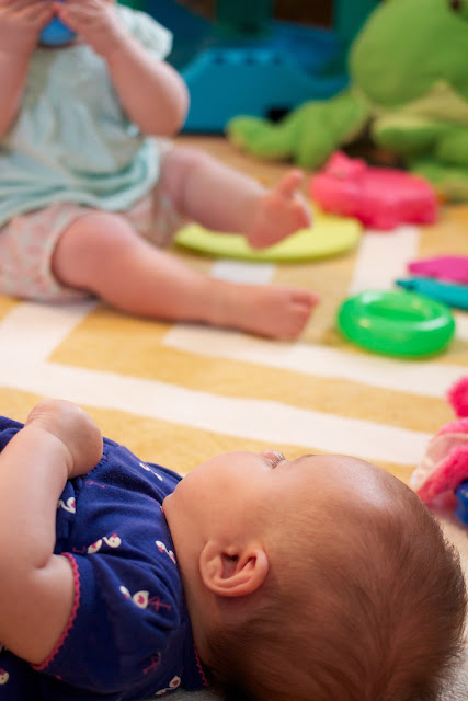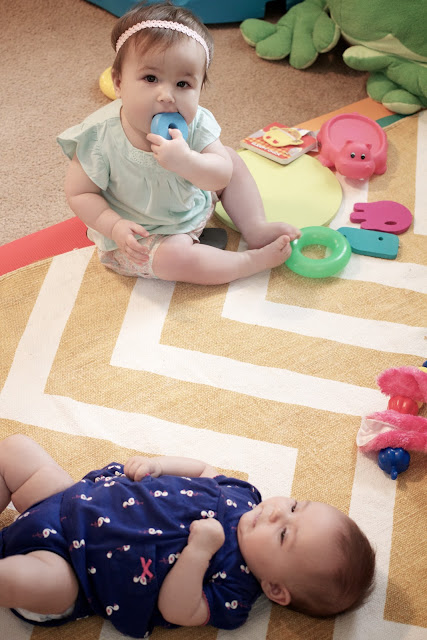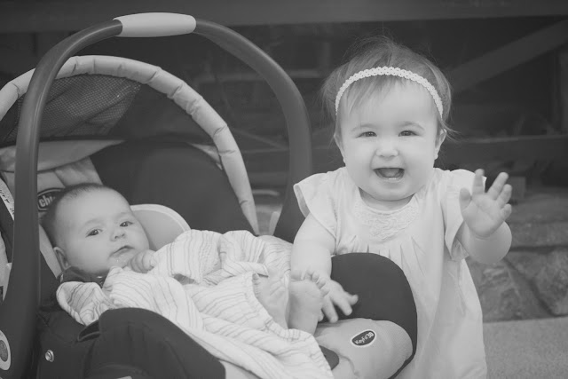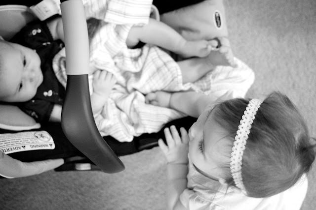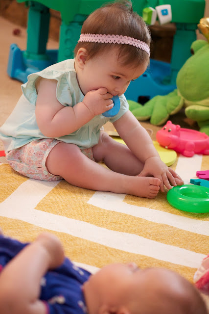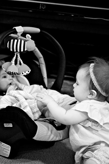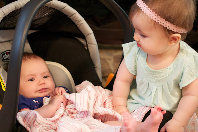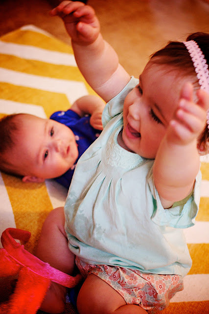 With an impending baby shower, Alli made the trek to Amityville this afternoon with Clara in tow to rummage through my collection of party-ware.  (“Collection” is the term hoarders often use to refer to their own hoards, note to self. But it’s not hoarding if you actually USE the stuff, right?) It was the first time Emma Vance has spent any significant time with a true baby-baby, and it made me both happy and sad to have the Finlay girls over to play and plan. On the one hand, it reminds me that I want E.V. to be little again. She’s growing up so fast; I can’t take it! On the other hand, being able to coo over little Clara is such a joy and makes the sad moments come and go quickly.