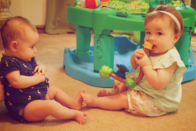 With an impending baby shower, Alli made the trek to Amityville this afternoon with Clara in tow to rummage through my collection of party-ware. (“Collection” is the term hoarders often use to refer to their own hoards, note to self. But it’s not hoarding if you actually USE the stuff, right?) It was the first time Emma Vance has spent any significant time with a true baby-baby, and it made me both happy and sad to have the Finlay girls over to play and plan. On the one hand, it reminds me that I want E.V. to be little again. She’s growing up so fast; I can’t take it! On the other hand, being able to coo over little Clara is such a joy and makes the sad moments come and go quickly.