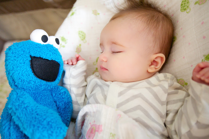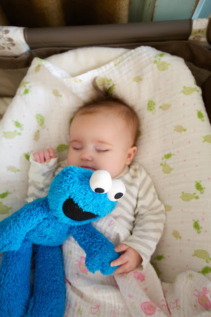 Then it was shot time. Ugh. I was hoping her cold would delay the immunizations a bit, but since she didn’t have a fever, they advised us to stay on schedule. Darn. The worst aspect this time around was that as soon as the nurse rubbed her chunky thighs with alcohol, Emma Vance started bawling because she knew what was about to happen. Unfortunately, it was the same experience today as it was two months ago–salty tears, painful screams, betrayed looks, hateful Snoopy Band-Aids. (Seriously, when will that roll of Snoopy Band-Aids run out? I can’t stand the sight of them!) When we got home, I nestled E.V. in her bassinet and gave her Cookie Monster to comfort her, and she scratched at his fuzzy fur and fell asleep. So cute. So sweet. Cookie Monster-1, Snoopy-0. We’ll consider it a win for Sesame Street.
