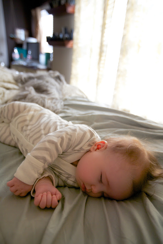 I did wake her up around lunch time to eat and snuggle, and Oscar, always the concerned puppy, joined us in bed. He knows she doesn’t feel well, and a puppy snuggle can make all the difference.