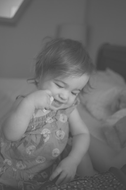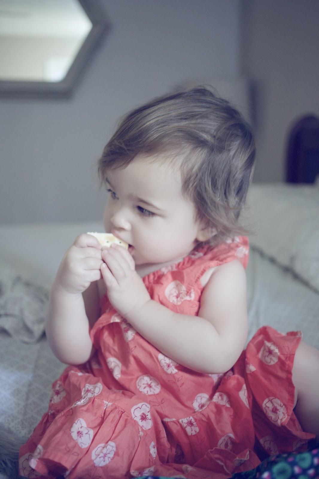 When Sleeping Beauty finally awoke, we did our daily post-nap routine. You see, E.V. is a bit of a snuggle bug, so she needs a few minutes of cuddling after a long snooze to wake up properly. (Who doesn’t?) This wouldn’t be unique, except that a few weeks ago I had a bout of the flu and had stashed Saltines in my nightstand, which Emma Vance promptly unearthed and sneakily devoured. Since then, she climbs over me to get into my nightstand, digging around for her crackers. So, every day, when she wakes up, we snuggle and have a sleepy Saltine snack in bed together. It makes for crumby sheets, but it also makes for good memories. Clearly “good memories” wins out in that match up. ;)