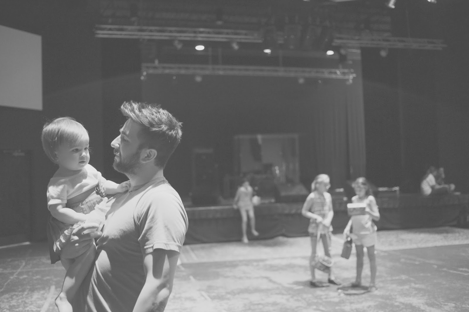 E.V. and I visited Ryan on Tuesday, sneaking a peek in on his class and having lunch “behind the scenes.” Emma Vance always loves a crowd to entertain, and with a bunch of kids and adults hanging around and eating, she was ecstatic! In fact, she pretty much ignored Ryan and I in favor of putting on a show for everyone–walking, crawling, banging together shoes, clapping for herself. She is a natural ham–a natural performer–and as Ryan walked me to the car, baby in tow, I joked, “So how old does Emma Vance have to be to sign up for cue52?” The bigger question is this: Will she opt to sign up for film class? We’ll have to see what Dad says about that. :)