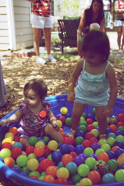 The Saturday before we left for D.C. we celebrated Emma Vance’s friend, Davis’s, first birthday. My friend, Rachel, put together an awesome party with a sunny theme that suited Davis’s personality perfectly. :) It was full of bubbles, toys, balls, kids running around, fajitas and CAKE, so both E.V. and I were happy as could be. She explored the toys (including his unopened birthday gifts…oops), parked herself in the ball pit for a while, and followed her big girl friend, Kensleigh, around the festivities. We both had a blast (although I’m pretty sure Davis had the best time of all!), and E.V.whined as we packed up to leave. Don’t worry, little one, there will be more time to play with Mr. Davis–although I can’t promise there will be cake involved–well MAYBE there’ll be cake involved… ;)