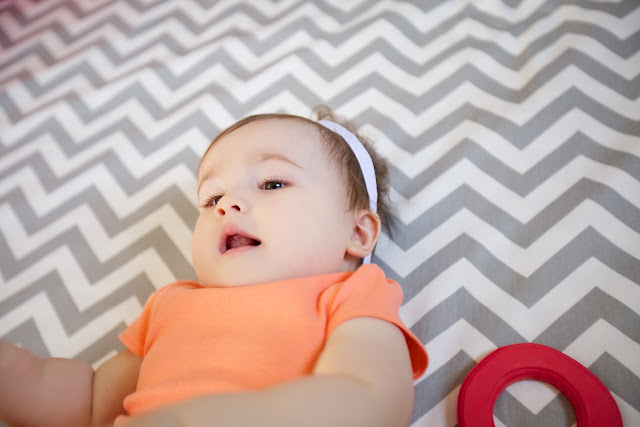 Beyond just standing up in your crib, this month your skills have skyrocketed in so many ways! You pull yourself up to a standing position very easily, crawl at lightning-fast speeds, cruise along furniture, talk up a storm (mama/dada/nana/hey)…it’s scary how quickly things are moving along! I have to watch you constantly because with your expert mobility you are now into EVERYTHING more so than ever. (You particularly enjoy scratching outlets, so, yeah…NOT safe, okay?) You have no fears, and oftentimes I watch you out of the corner of my eye as you crawl from one room to another to grab a toy you remember you left there earlier. I always run after you, especially when we’re upstairs because you try to follow the dogs down to the living room; in fact, one time I literally caught you by the belly as you lunged head-first after them! (We’ll tackle the stairs a little later in life, if that’s okay with you!) This month we retired your baby whale tub, so now you take big girl baths. I had to get a no-slip mat because the tub has become your favorite place to practice standing, which is so dangerous! You also pick up the tiniest items, stickers and leaves and fuzzballs, eating them all with curious pleasure. I often find you with a closed mouth and a confused look on your face, and in those moments you are NOT eager to share you discoveries with me! I have to force your little mouth open to make sure you don’t swallow whatever you’ve found, and since you got your first two teeth this month (!), you have no qualms about biting me in retaliation. Ouch!