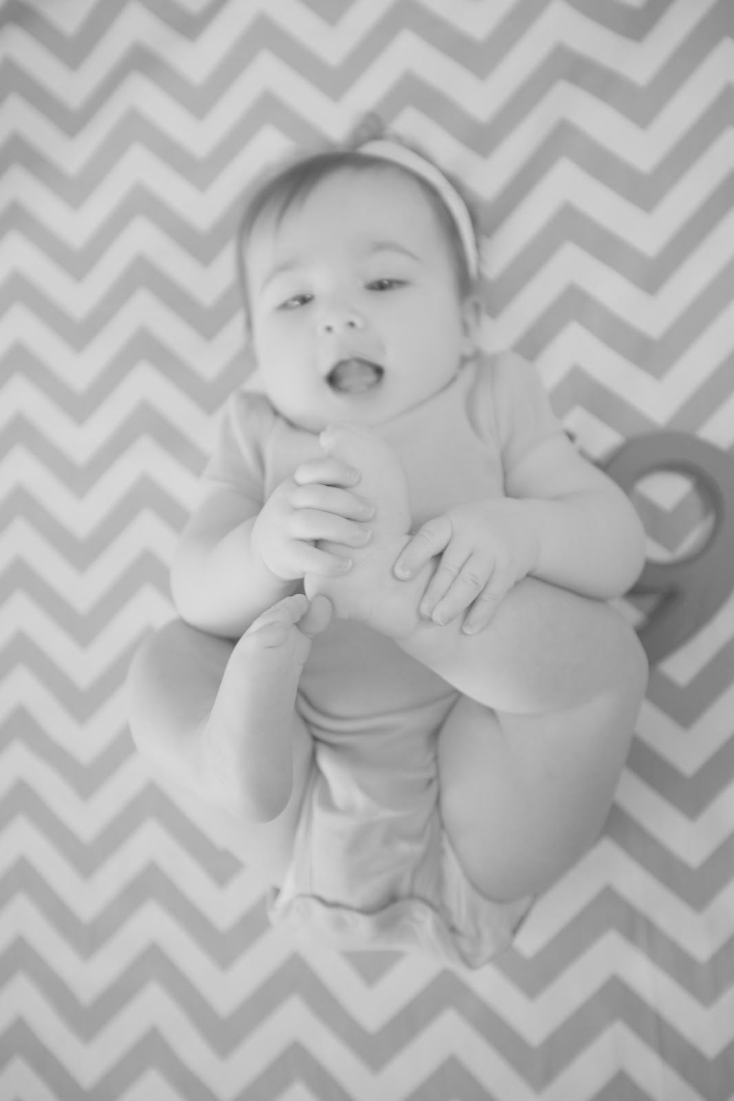 Beyond just standing up in your crib, this month your skills have skyrocketed in so many ways! You pull yourself up to a standing position very easily, crawl at lightning-fast speeds, cruise along furniture, talk up a storm (mama/dada/nana/hey)…it’s scary how quickly things are moving along! I have to watch you constantly because with your expert mobility you are now into EVERYTHING more so than ever. (You particularly enjoy scratching outlets, so, yeah…NOT safe, okay?) You have no fears, and oftentimes I watch you out of the corner of my eye as you crawl from one room to another to grab a toy you remember you left there earlier. I always run after you, especially when we’re upstairs because you try to follow the dogs down to the living room; in fact, one time I literally caught you by the belly as you lunged head-first after them! (We’ll tackle the stairs a little later in life, if that’s okay with you!) This month we retired your baby whale tub, so now you take big girl baths. I had to get a no-slip mat because the tub has become your favorite place to practice standing, which is so dangerous! You also pick up the tiniest items, stickers and leaves and fuzzballs, eating them all with curious pleasure. I often find you with a closed mouth and a confused look on your face, and in those moments you are NOT eager to share you discoveries with me! I have to force your little mouth open to make sure you don’t swallow whatever you’ve found, and since you got your first two teeth this month (!), you have no qualms about biting me in retaliation. Ouch!