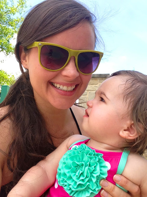 Ryan and I opted to go to brunch this morning, and so we hit the gym in the late afternoon, post-nap. There were a lot less kids than usual, and as Ryan did a quick workout upstairs, I got Emma Vance and myself settled in poolside. We unpacked, had a snack, lathered on our sunscreen and waddled into the kiddie pool. Emma Vance was soooo excited this time around and not at all afraid of the gushing mushroom. We did a quick lap around the super shallow end of the pool, and as I picked her up to venture a bit further in, the lifeguards blew their whistles for what I assumed was adult swim. Most of the families began packing up, which I figured had to do with it being almost dinnertime, so E.V. and I walked around the pool, stopping to say hello to every small child she encountered. As we looped back around to our chairs (after what seemed like the longest adult swim EVER), I noticed a lifeguard scooping something out of the pool. As we passed by, I joked with him, “Hey, that’s not poop is it? {chuckle, chuckle}” He smiled back at me and gave me a reassuring, “Nah,” followed by the less-reassuring, “It’s not poop. Just vomit.”
