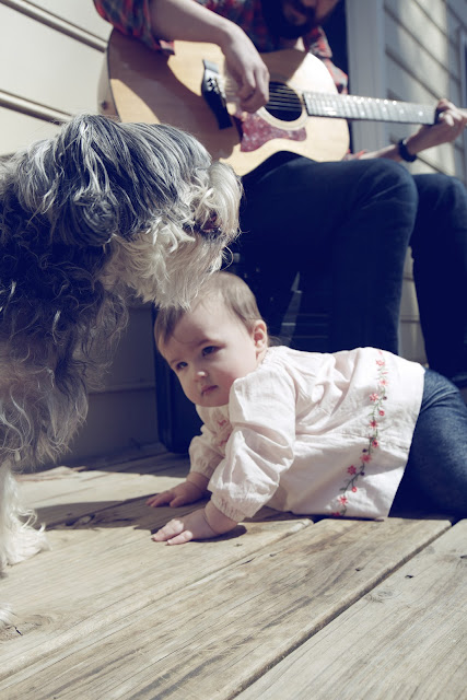With a bout of rainy, cold weather this week in Atlanta, I’ve finally joined the “wish it was summer” bandwagon. Last weekend was a tease, with sunny skies and mild temperatures. Waking to wet roads, chilly winds and raindrops a-fallin’ on our heads as we went to church this morning made me have daydreams of last Sunday, when our whole little family spent the afternoon singing and crawling and barking on the back porch…sigh.