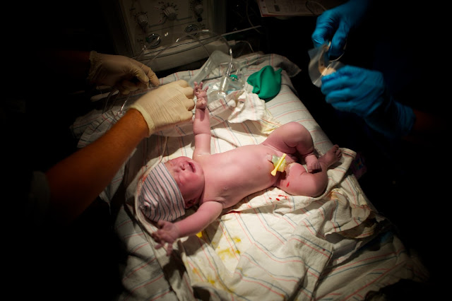 Emma Vance arrived at 1:06 a.m. She was perfect! The NICU team had already arrived because of my temperature, but she had also had some meconium in her fluid that concerned them. Because of the meconium, Ryan wasn’t allowed to cut the cord, which saddened me. However, it allowed Ryan to take about a million pictures, a flipbook of her first moments of life. Once the NICU team was handling her, I immediately felt a surge of adrenaline! It was over! She was here! I had done it! There was a lot of blood–a LOT–to deal with, and as the doctor said, “You’re bleeding more than the average person,” I mentioned that my mother had complications of the same sort with her births. Yikes. But everything was fine. I was stitched up and ready to go when they let me hold E.V. for a few minutes. She was so tiny and warm in my arms! She looked up at me with these sweet, dark eyes, and I was enamored. She was completely alert but quiet, and I could just see her content, happy personality right away. Our encounter was brief but meaningful as they whisked her away to the NICU.