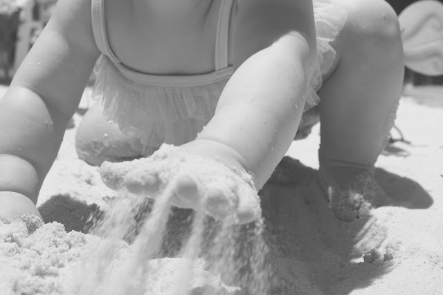 “E.V. Beach” is full of fun little toys and activities to keep Emma Vance occupied, and after taking an immediate nose-dive into the sand after about two seconds of playing, it did its job and kept her occupied all afternoon. She loved lounging in the baby pool, crawling through the gritty sand and chewing on the beach toys (especially a hula girl that was her clear favorite of the day!). I think she was sad to leave E.V. Beach, trading her tutu swimsuit for dry clothes, in order to join us grown-ups for lunch…and I can’t blame her! :)