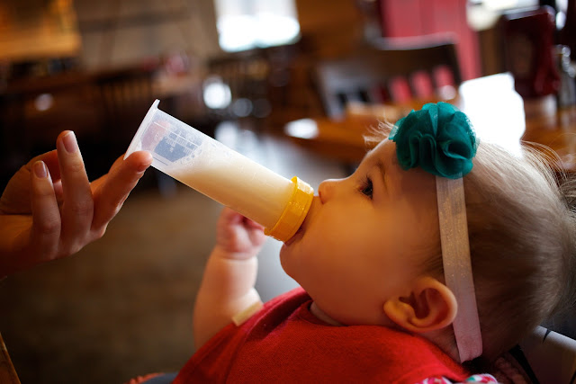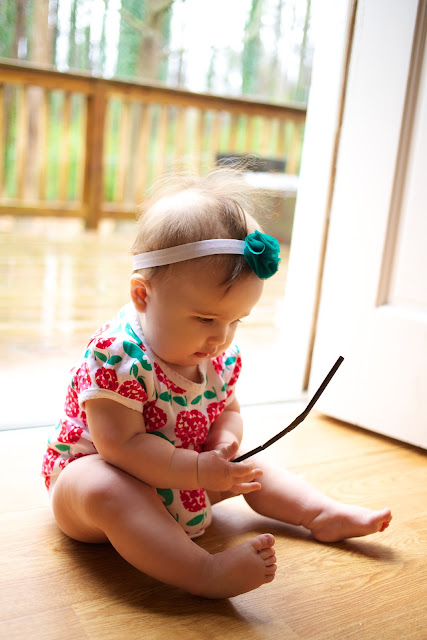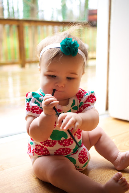 On rainy days we always struggle finding ways to entertain ourselves. Running errands in yucky weather isn’t fun, neither is the park or going for a walk. Thankfully babies are entertained by anything and everything in this big ol’ world of ours, from big stuff to small. Today we ventured out into the rain for lunch with Dad and came back with a straw–which provided Emma Vance lots of rainy day entertainment. We pretended she was E.V. Potter with a brand new wand…and she was so enthralled I’m sure her next word will be “Expelliarmus!” :)