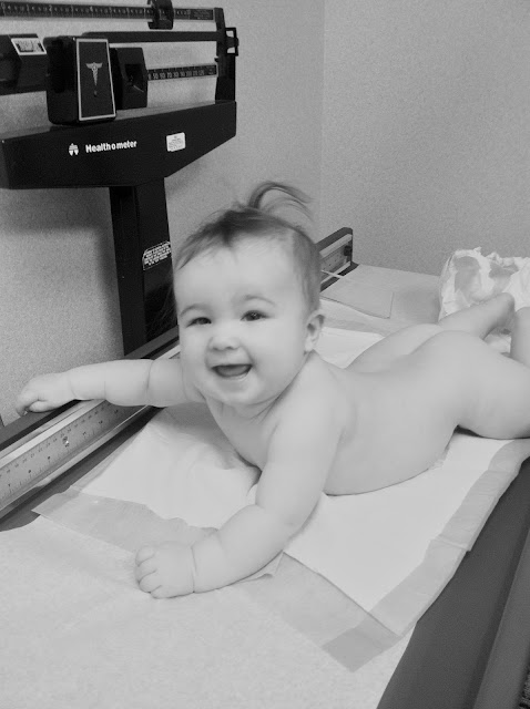 Emma Vance is stuffy and congested, and so I figured that a quick drop-in at the doctor’s office to weigh her couldn’t do any harm; sick is sick, right? So we kept our heads down and hands to ourselves and braved the germiest of places today to check in on how she’s growing, and man, is she growing!