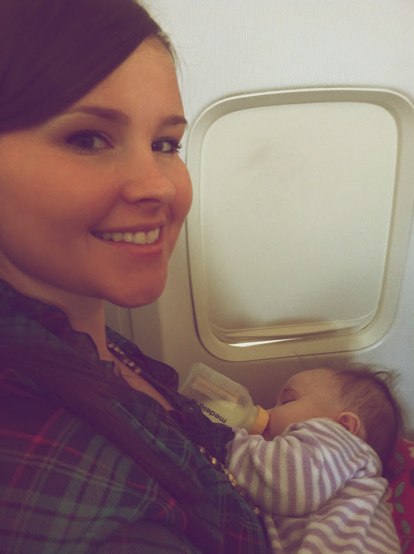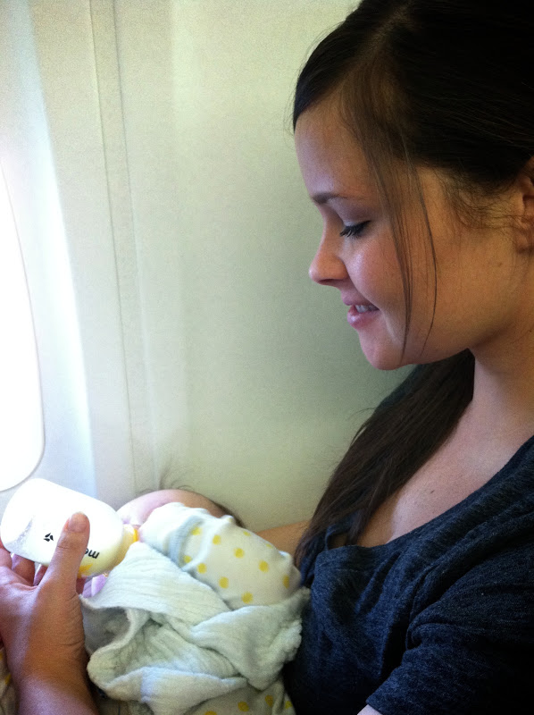 | I let her drink in her sleep while we took off so she wouldn’t awake to stuffy ears. |