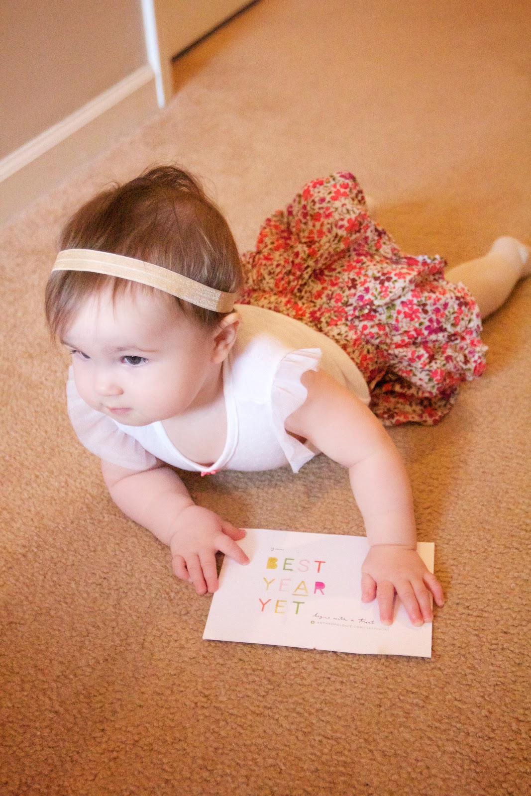 Yup. No kidding. My then-unborn child had her own frequent-shopper card to Anthropologie–and a handy coupon for me to use. When the little kraft envelope carrying that precious yellow card arrived, it was bizarre. I had never actually seen E.V.’s name on paper, and since we said it so infrequently in an effort to keep it a secret, it was definitely a moment where the baby in my belly became a reality for me.
