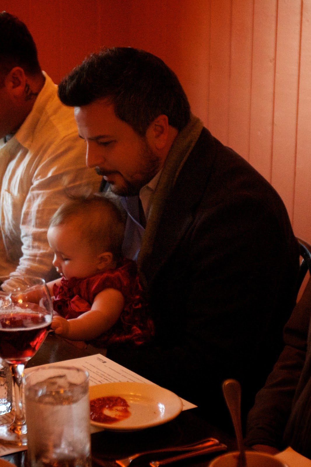 | We sat down to dinner, but the food played second fiddle to the baby, as is to be expected. Ha! |