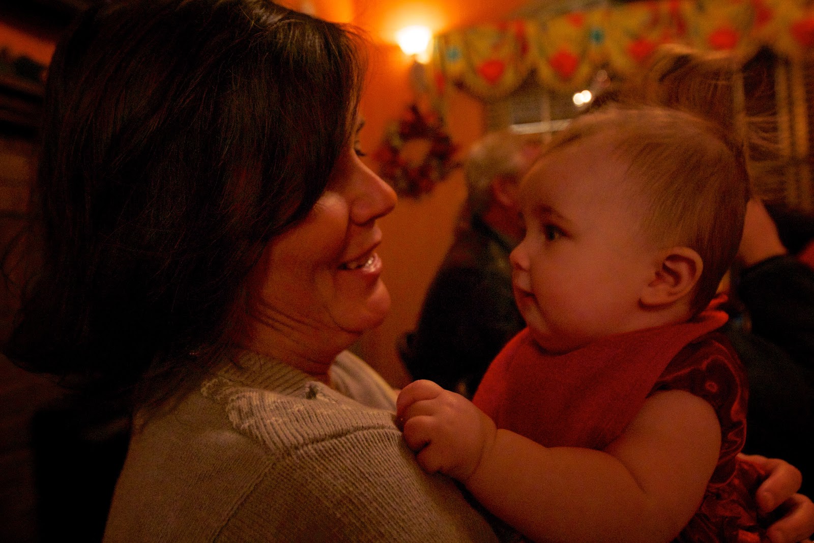 | After visiting with lots of family members, she ended the evening with Aunt Alana. So cute! |