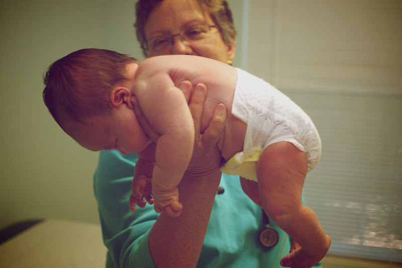 The craziest part of the exam was when the doctor checked Emma Vance’s reflexes by holding her up in the air on her belly. (Nervous mom moment.) Apparently her baby reflexes checked out well, and as quickly as the doctor had her upturned, I had her back in my arms. Whew.