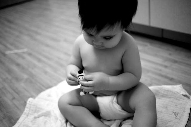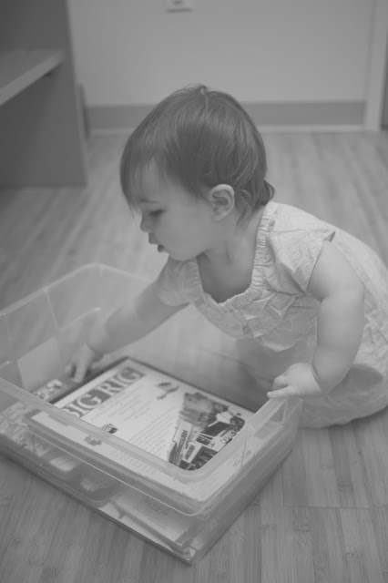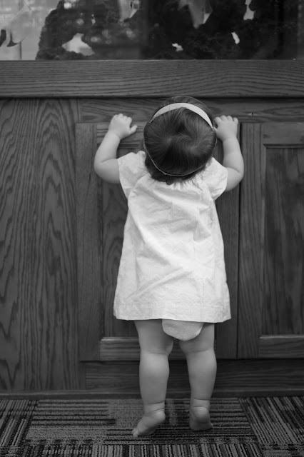 Once we were done with the stats, we had to wait for the doctor. Any form of waiting is getting increasingly difficult as E.V. gets more mobile. I was left trying to figure out how to entertain a one year-old for what felt like for-ev-er, so here’s what we did:
