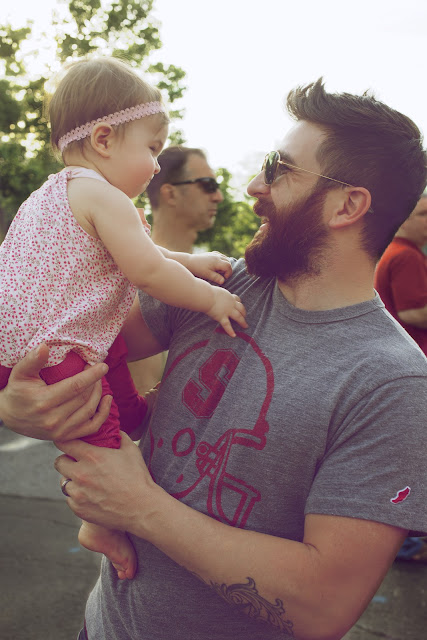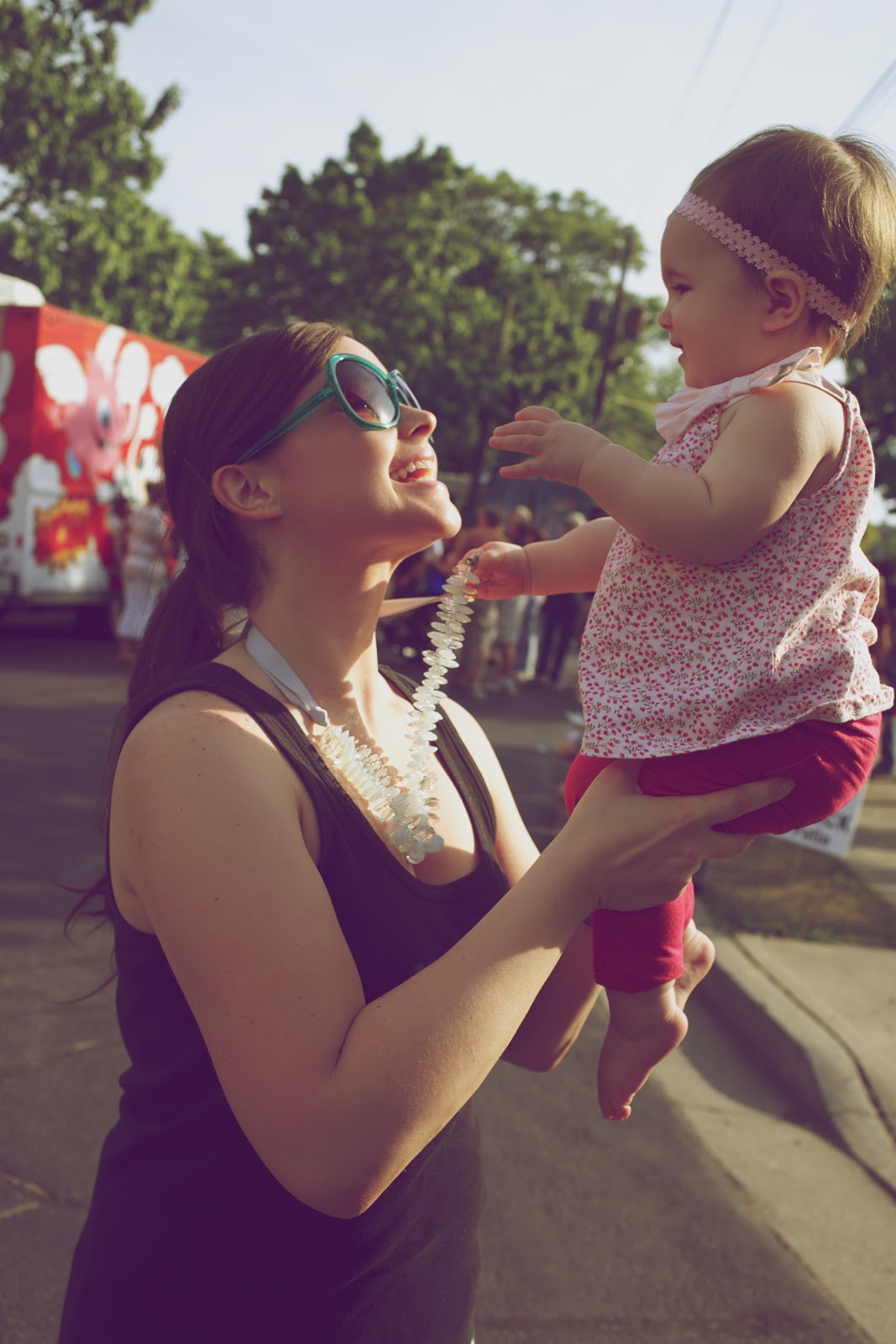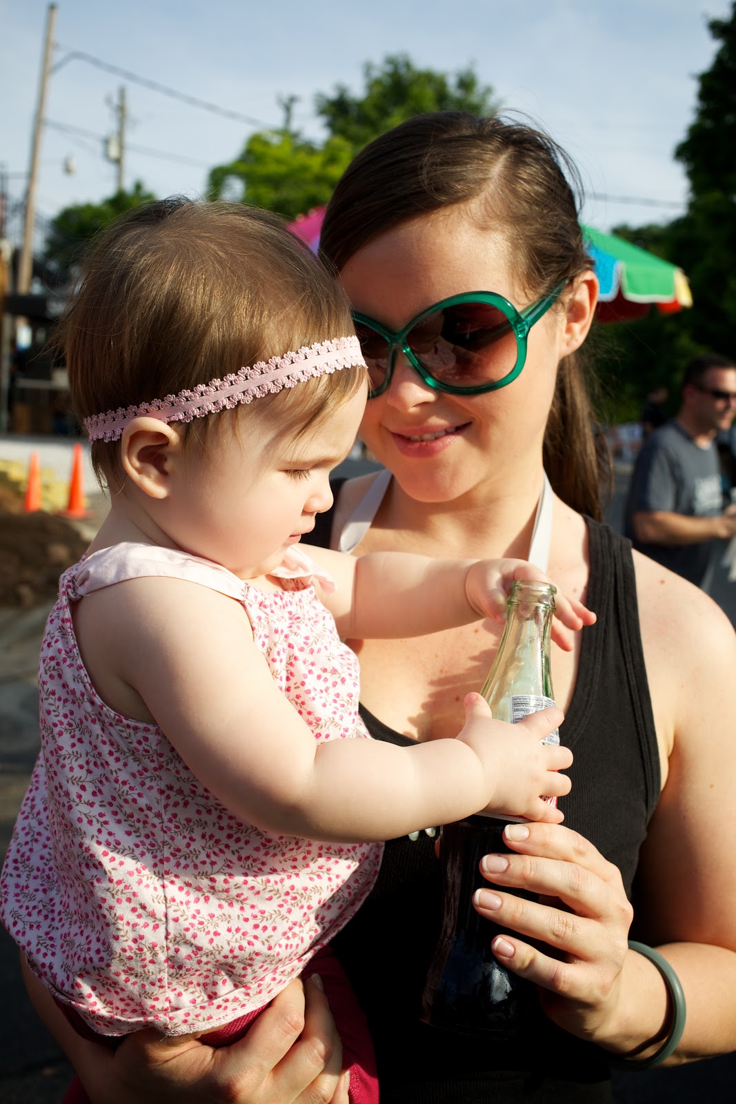 The weather was warm and summery, the sound of live music reverberated off the old brick buldings, and the smell of barbecue and french fries danced through the evening air. I can’t believe we’ve missed out on this all spring! Shame on us for not taking advantage of the community (and delicious food!) right in our own backyard. We visited The Fry Guy, W.O.W. and (of course) King of Pops, purposely leaving the other trucks for another visit. We listened to a live band (young kids testing out their courage and talent). We ran into folks from various aspects of our lives. It felt like a small town, which we loved. And, of course, E.V. had an amazing time people-watching (and then subsequently performing for those people once she’d gotten their attention). She even enjoyed her first King of Pops, and I’m pretty sure she was ob-sessed with the chocolate sea salt pop we bought to “share.” :)