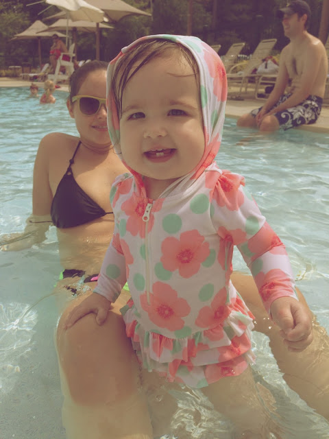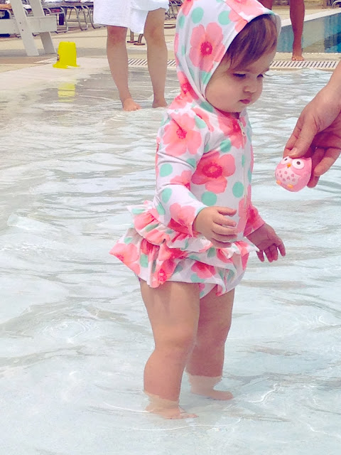 I’m not a huge beach or pool person. Sure, they’re fine every once in a while, but I’d be just as happy spending my vacations in the mountains. (I blame childhood summers spent at camp in North Carolina instead of at the Gulf Shore.) HOWEVER, Emma Vance is a total water baby, meaning that this summer has been mostly about trying to figure out how to indulge her, whether it’s the big pool, baby pool, tub, sprinkler…or, heck, even traipsing outside in a good rain storm considering we’ve had a million this season!
