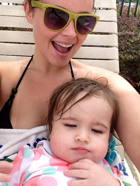 Thus, this week, as we returned from D.C., Ryan and I decided to take the proverbial plunge and visit the gym pool, and although Emma Vance was so terrified of the gushing mushroom that she planted herself in about six inches of water and refused to get any closer to it, it was FUN. We played with her toys, interacted with other kids, had lunch poolside and lazed around until nap time. The whole time I was kicking myself that we’ve missed out on this activity all summer–especially when she took three+ hour nap that afternoon! No wonder moms are so pool-obsessed when kids are home for the summer! ;)