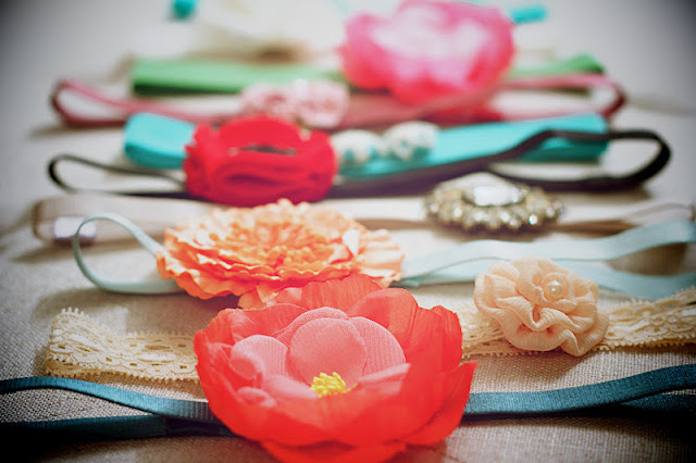 This baby girl’s closet has turned out to be more feminine than fun, which has made finding coordinating hair accessories a little more challenging than expected. Really, there are a lot of options out there, but the affordable ones seem to only be available in bright colors and patterns, and the “softer”/daintier options seem to be way expensive. After creating my ideal hair accessory wardrobe in my Etsy cart, the final price was a bit alarming–after all, she will be growing out of these things relatively quickly and many of them match only one outfit! And, of course, there’s the artist in me (as well as the Type A personality) that knew deep down I could make these headbands myself…