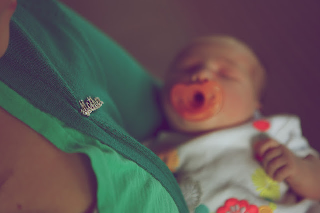 We were really worried about E.V. in the heat (man, we’ve missed some hot ones!), plus we wanted to get in one last afternoon nap before heading into the Great Unknown, so we didn’t leave until after 7 p.m. yesterday. Thankfully she was like a bug in a rug in the humid, hot air–I suppose because it reminded her of the womb? However, she did NOT like her car seat (which Ryan put in WHILE we were at the hospital; let’s just say we balance each other out on the planner/non-planner continuum), and upon realizing that the only solution to her misery was to head home quickly, we left the hospital with a crying baby and a little anxiety. Thankfully, the second we got on the highway, she passed out from the motion, so Ryan and I were able to relax and enjoy the ride home.