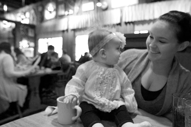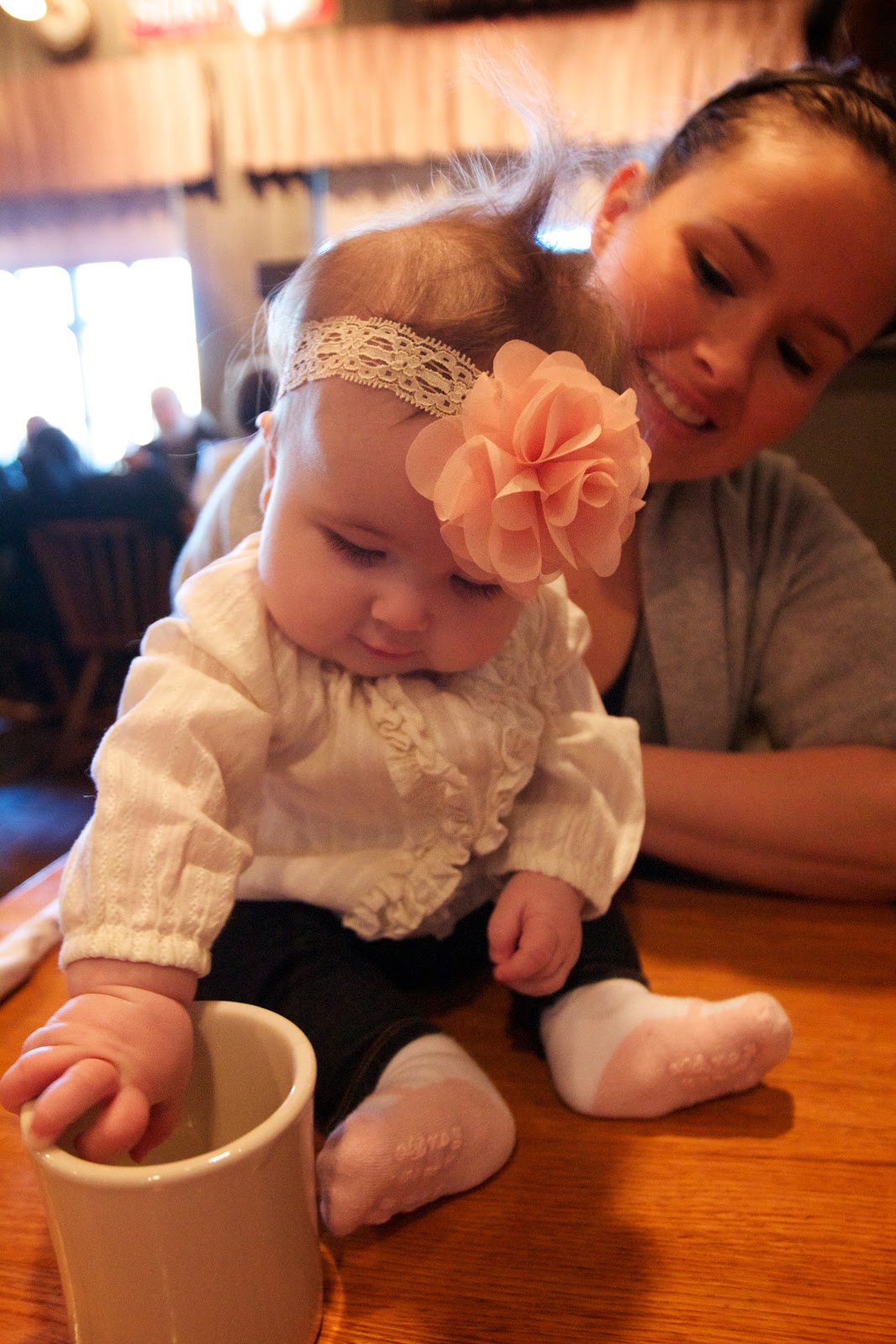 This morning just before 6 a.m., Emma Vance woke herself up by rolling over onto her belly while dreaming–and then forgetting in her sleepy state how to roll over to her back. She was pretty disoriented and upset–as was Oscar. Since the baby had woken him up out of a peaceful slumber, he realized that he had the urgent need to go potty. So I walked E.V. downstairs with me to let him out, where it occurred to her that we were up waaaay before we normally are. (“Is it still dark out, Mom???”) This realization brought a smile to her baby face, and before long we were up-up. She was all giggles and babbling as we let Oscar back inside and crawled in bed. (Of course we had to wake up Ryan to join us in our early morning party!)