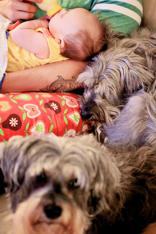 I often feel guilty that I don’t have as much time or energy to devote to the dogs these days. It feels terrible to not be able to explain to them that right now Emma Vance literally needs me for survival and that I know they’ll be okay on their own for a bit. The best I can do is try to sneak a few minutes here and there with them when she’s asleep, buy them a few new toys to make up for “mom guilt,” and indulge them with a few extra treats right now.