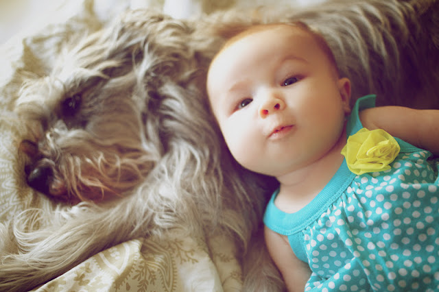 Oscar took to Emma Vance quite quickly. He’s happy-go-lucky in life, and thus adjusted easily. Oscar will be E.V.’s bestie one day; I have visions of her laughing as she dresses him up in ridiculous outfits, Oscar putting up with it because he loves her so much. Oscar loves being close to her, napping next to her, sniffing her at all opportunities, trying to play with her already because he doesn’t understand that she’s fragile. (He’s even scratched her a couple of times, slinking away guiltily when we yell at him. We know you didn’t mean to, buddy, but she’s not old enough to play back yet!) In the beginning, when I was still getting up to feed her in the middle of the night, Ryan and Olive would be snoring away while Oscar and I tended to Emma Vance in the nursery. What I had meant to be Olive’s dog bed in the baby’s room was quickly usurped by Oscar. He wouldn’t let Emma Vance out of his sight, so no matter the hour, he would trot behind me then curl up at my feet until it was time to put E.V. back in her bassinet. Oscar is a very good puppy dad, and one day will make a wonderful puppy friend for Emma Vance.