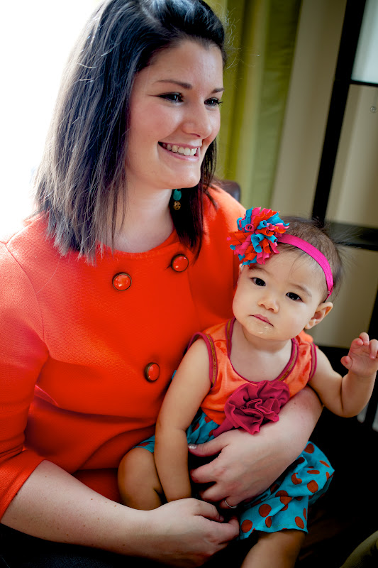 During Kensleigh’s party, I got a chance to catch up with the ladies of Pottery Barn Kids…now with kids of our own! Between Kendall with Kensleigh, Rachel with Davis (who’s only a few weeks younger than Emma Vance), and my little lady, all we need to be complete is Lindsay to catch up! LStanley was kind enough to snuggle E.V., who was worn out from a morning filled with kicking her dad and pooping the bed. (And, yes, I took a million pictures of the two of them because it was so cute.) Despite Emma Vance’s best efforts to stay awake for the festivities, she didn’t last long. I can’t complain, though, because she got to wear her PARTY DRESS, which was super exciting for me. (Hey, you don’t have to be awake to look fashionable!) Ryan cracked me up before we left, proving himself to be a total “guy” as he commented on how tight E.V.’s 0-3 month dress was and thus how she wouldn’t be able to wear it twice. Doesn’t he know that party dresses are a one-event thing?:)