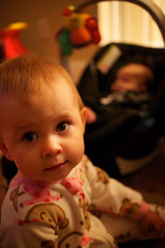 After the game was over, Jacob and Katie’s girl, Ivy, awoke to join us for a little bit. She and Emma Vance are already old friends, and as the older and wiser of the pair, Ivy spent some time rocking “the baby” to sleep in her car seat. No kidding. So sweet. So funny.